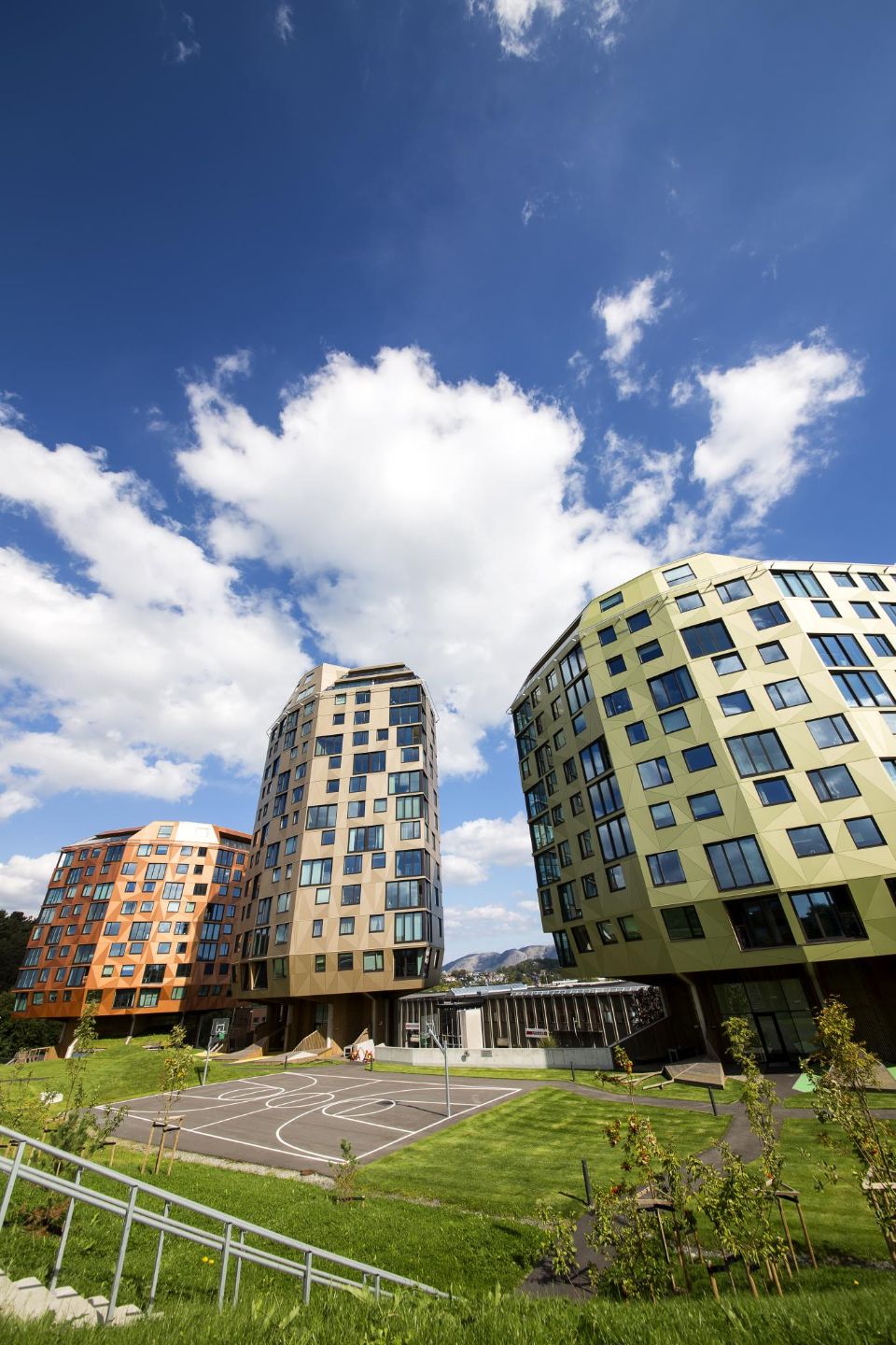 Das preisgekrönte Design der Rundeskogen Towers kombiniert innovative Formen und Materialien und garantiert Bewohnern und Nachbarn atemberaubende Ausblicke auf die norwegischen Fjorde.