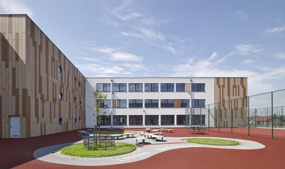 « En outre, il s’agissait, sur un terrain plutôt exigu, d’intégrer tous les bâtiments, les annexes et les équipements extérieurs. Par conséquent, bâtir en hauteur était la seule solution pour répondre à toutes les exigences fonctionnelles d’un lycée. Dans ce contexte, notre deuxième principe s’appliquait tout naturellement : il importait que le lycée, malgré son côté plutôt imposant, devienne partie intégrante du paysage urbain. Parallèlement, nous avons privilégié des solutions durables, sachant que le projet représentait un investissement considérable pour la municipalité de Dopiewo ».