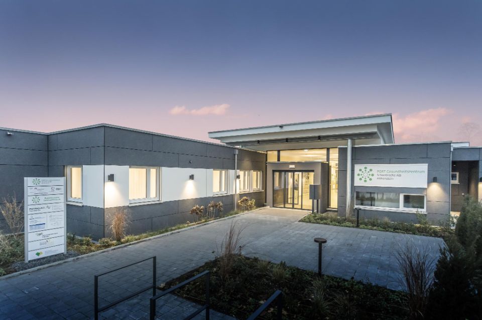SchwörerHaus is headquartered in Hohenstein, making the PORT Gesundheitszentrum a perfect opportunity to showcase the company’s commitment to the community – and explore at the same time new market opportunities. Johannes Schwörer, the CEO of SchwörerHaus, was immediately receptive to the idea, according to Marketing Director Andreas Steiner. Since ‘Gesund Bauen’ (‘Healthy by design’) is one of the company’s central claims, getting involved with the healthcare centre and contributing to a much-needed upgrade of the social infrastructure in the region made immediate sense. As an added benefit, the company’s employees would gain access as well to first-rate medical services.