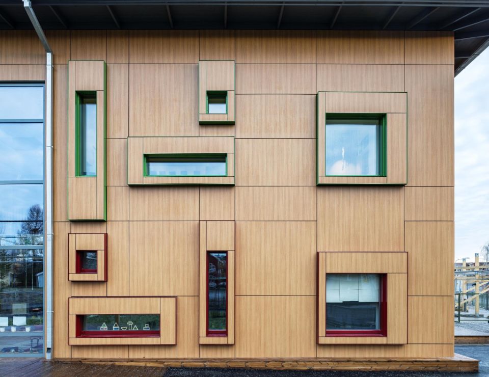 For VNB, the pre-school in Umeå was the first project with Trespa. Per Linghult points out: “We ordered the largest panel format available, 4270 x 2130mm, to allow for maximum flexibility on site, as we cut all the panels to size ourselves. In the meantime, though, we have used Trespa® Meteon® panels for the ventilated façades of several additional buildings, and our experience with the Hedlunda Förskola has helped us maximise efficiency. We are now using the four available panel formats in ways that reduce cutting losses, depending on the shop drawings and the technical constraints”.