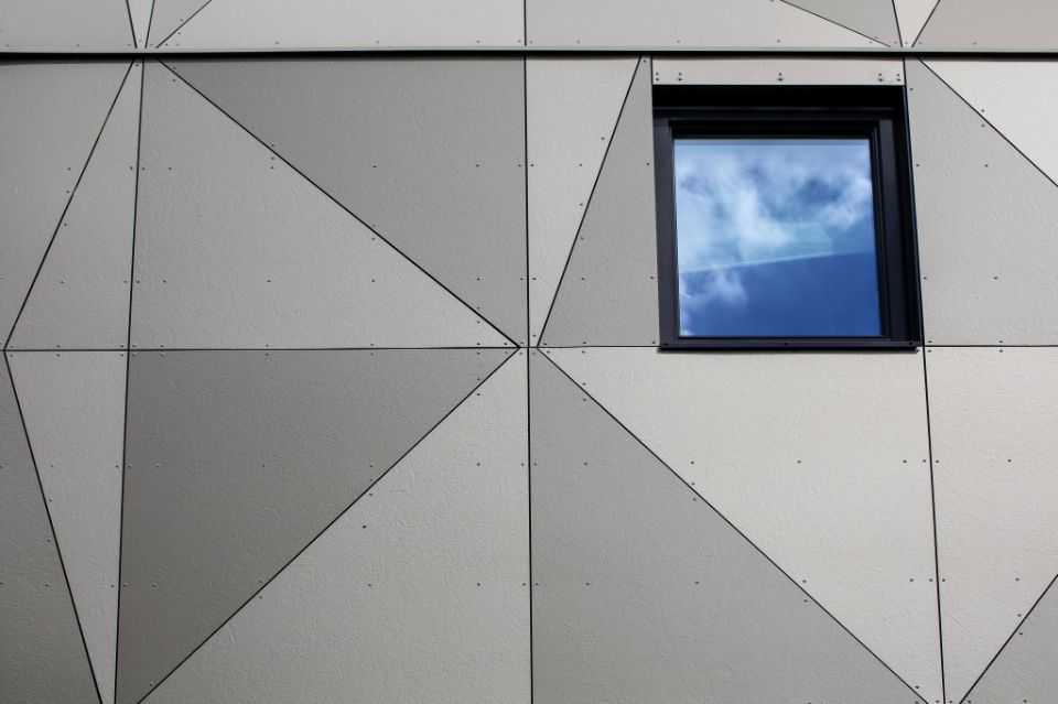 “The architects drew individually every single piece of the façade of the first tower,” recalls Gaute Hoff, Sales Manager Building of VINK Norway—Trespa’s local distributor and the company responsible for the optimising the machining of the cladding panels. “We could make the cuts with a standard milling machine, but preparations were very complicated because we needed to cleverly place all the triangular shapes onto the Trespa® rectangular sheets in a way that would minimize the machining loss.”